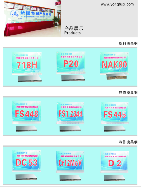 撫順特鋼以生產(chǎn)經(jīng)營高檔次、高附加值特殊鋼為主要業(yè)務,是國內(nèi)特殊鋼行業(yè)的龍頭企業(yè)。我司是撫順特殊鋼股份有限公司專營代理商,主要經(jīng)營撫順特鋼的塑料模具鋼(718H、P20、NAK80) 、熱作模具鋼(FS448、FS413、FS445) 、冷作模具鋼(DC53、Cr12MoV、D2)的批發(fā)兼零售;同時,我司擁有一支技術實力雄厚的隊伍為客戶提供優(yōu)質的模具熱處理服務,并獲得撫順特鋼認證。