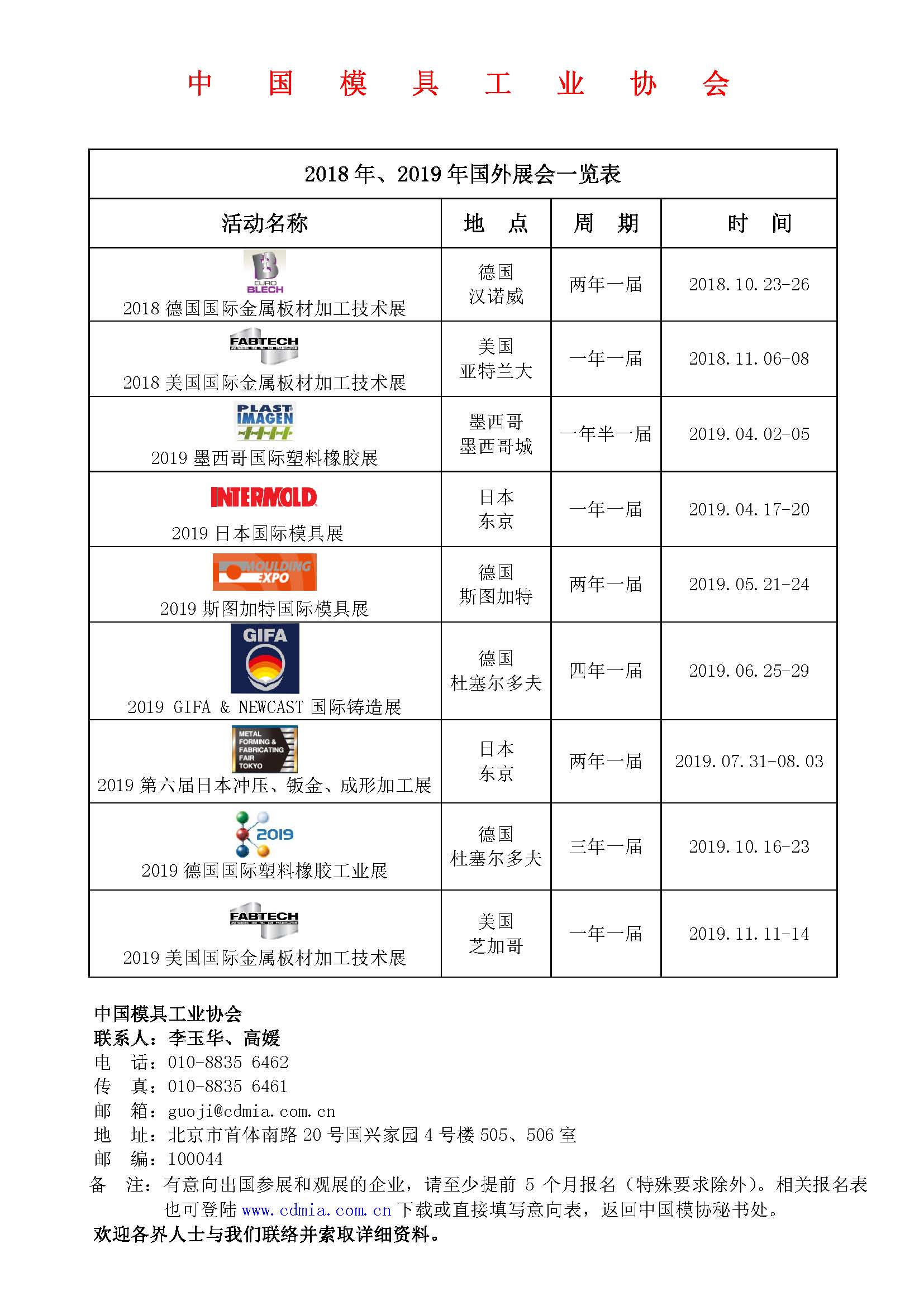 2018—2019國外展會一覽表