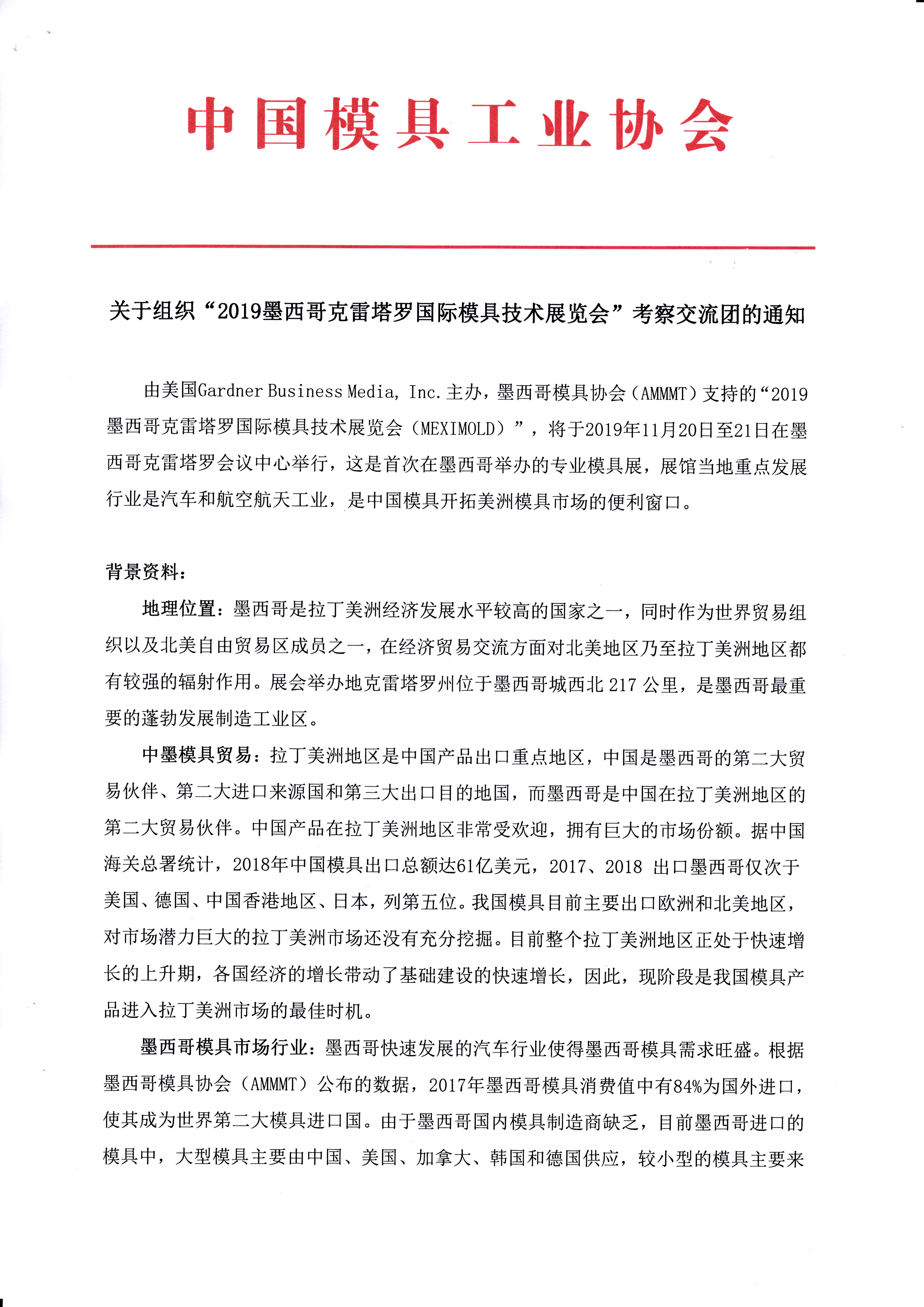 關于組織“2019墨西哥克雷塔羅國際模具技術展覽會”考察交流團的通知
