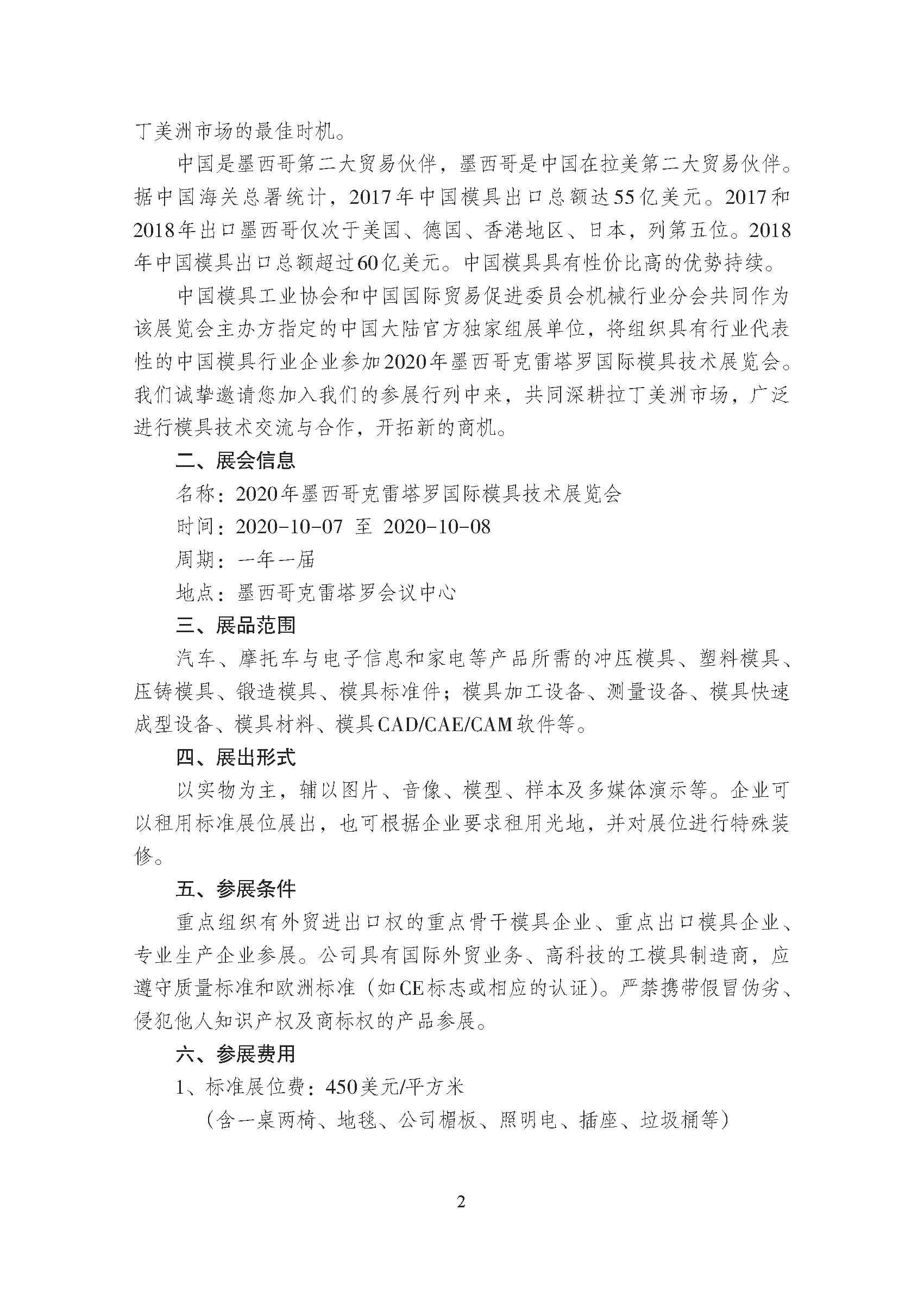 關(guān)于邀請(qǐng)參加2020年墨西哥克雷塔羅國(guó)際模具技術(shù)展覽會(huì)的通知