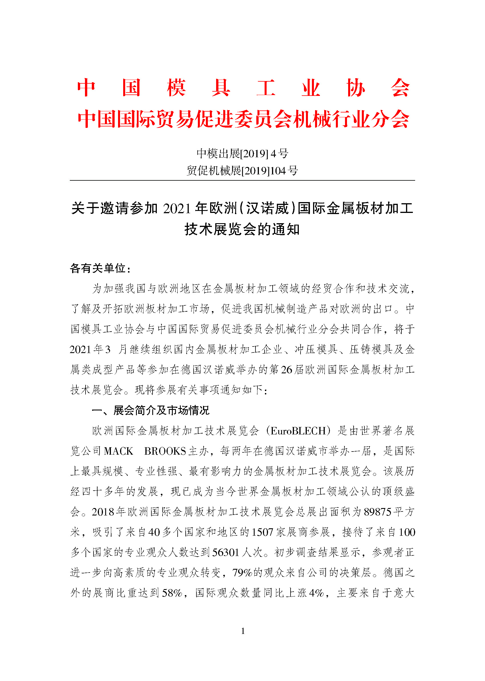 關(guān)于邀請參加2021年歐洲(漢諾威)國際金屬板材加工技術(shù)展覽會的通知