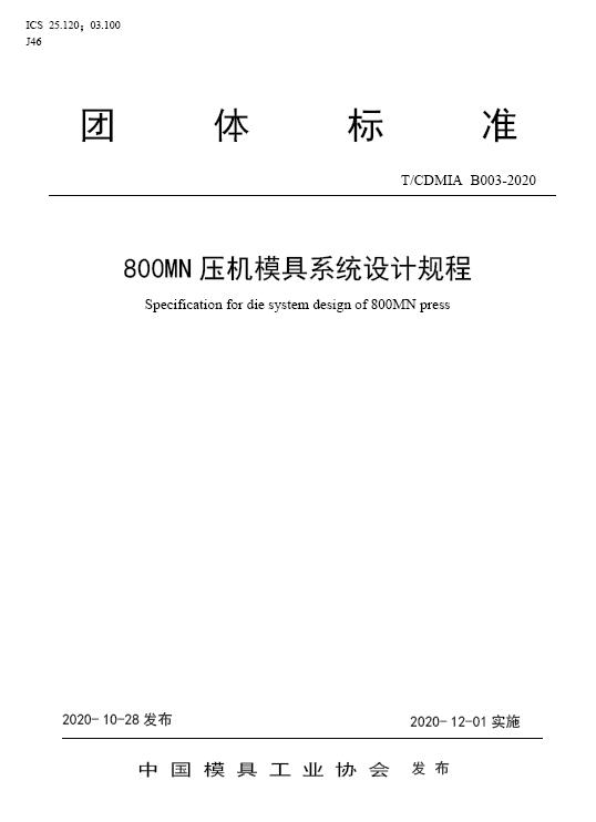 中國模協(xié)標(biāo)準(zhǔn)B003-800MN壓機(jī)模具系統(tǒng)設(shè)計(jì)規(guī)程-2020