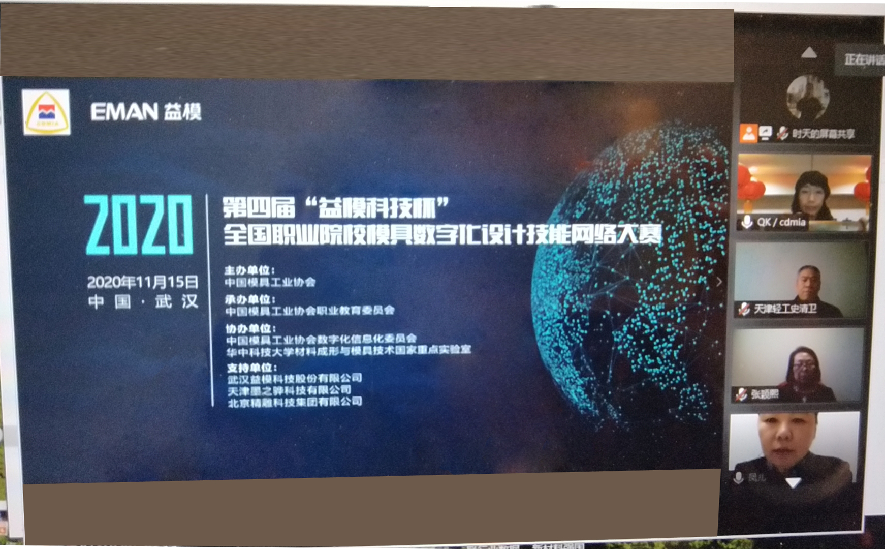 網絡大賽于9:00-9:30通過“騰訊會議”網絡平臺舉行開賽式,大賽執委會委員中國模協職教委副秘書長王翠鳳主持,介紹參加開賽式的大賽執委會成員。會上,大賽技術支持單位益模科技股份有限公司董事長/總經理易平致辭,中國模協職教委主任戴裕崴講話,中國模協常務副會長兼秘書長秦珂講話,秦秘書長主要從行業角度肯定 “網絡大賽”模式,“網絡大賽”賽項內容兩個方面的意義和作用。大賽專家組組長史清衛宣講賽事注意事項,現場裁判宋斌代表裁判組進行宣誓,參賽學生代表--河南機電職業技術學院王浩瑜同學進行宣誓,最后中國模協職教委秘書長張穎熙宣布大賽開賽。