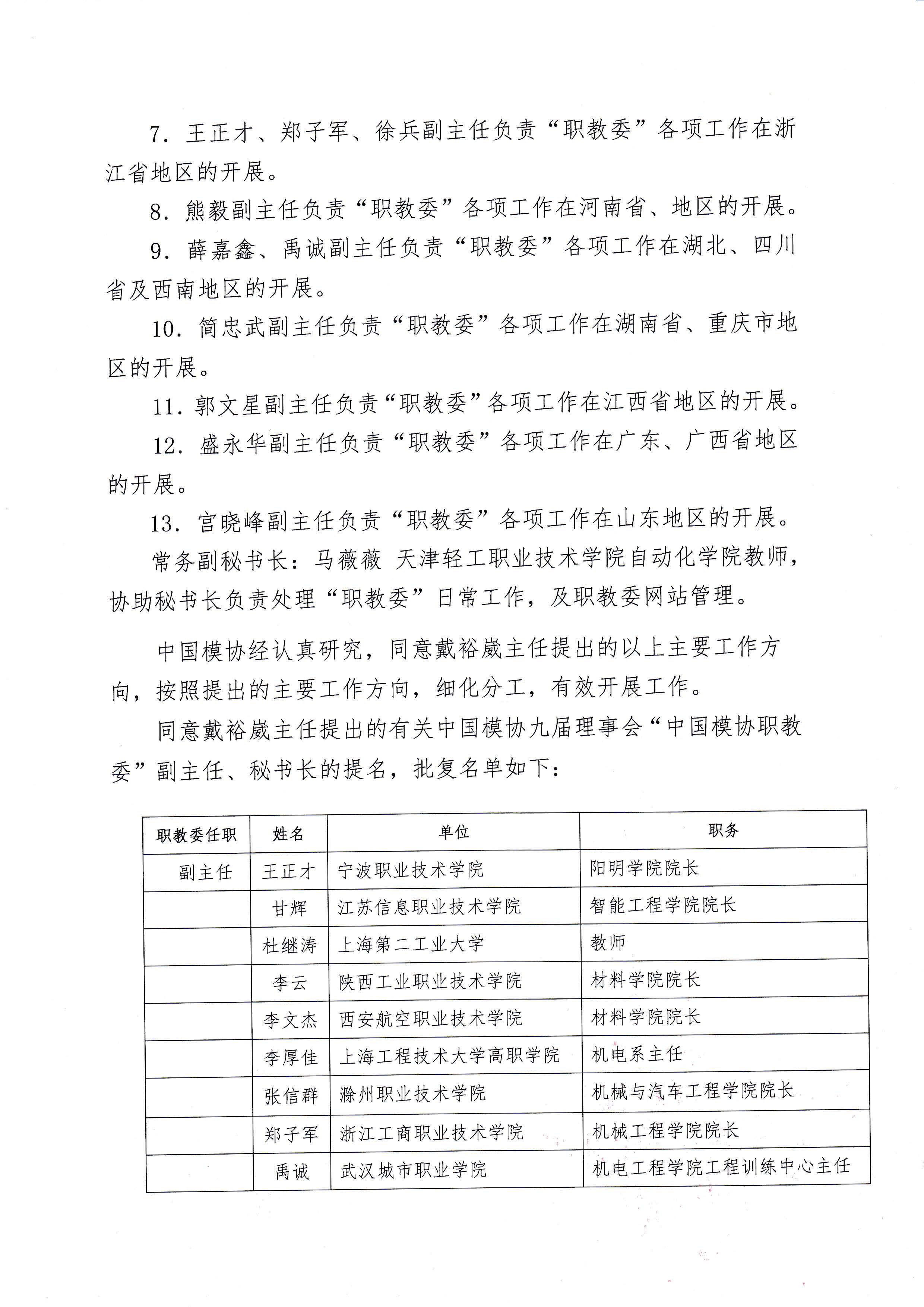 第九屆理事會職業(yè)教育委員會建制的批復(fù)