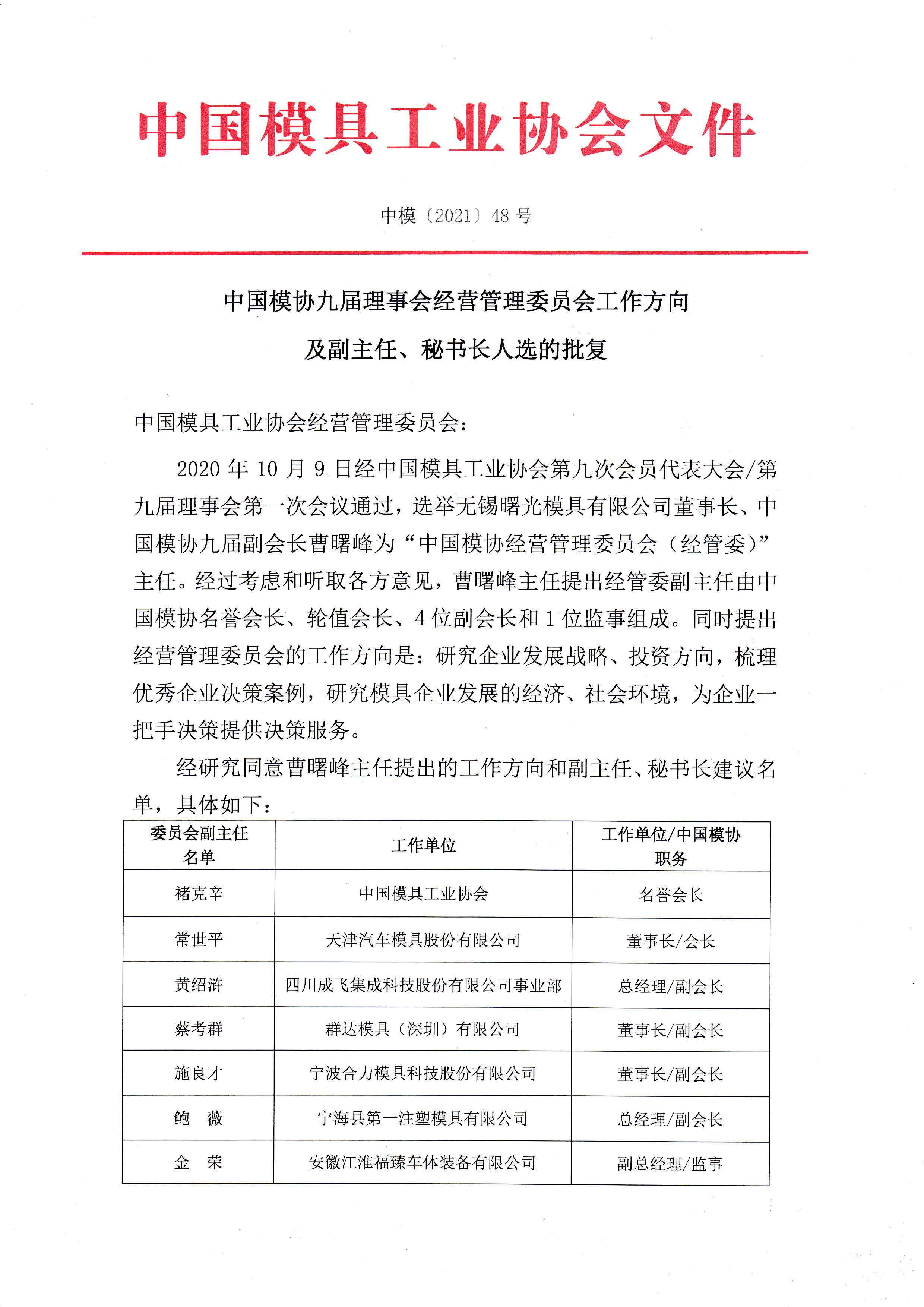 中國(guó)模協(xié)九屆理事會(huì)經(jīng)營(yíng)管理委員會(huì)工作方向及副主任、秘書長(zhǎng)人選的批復(fù)