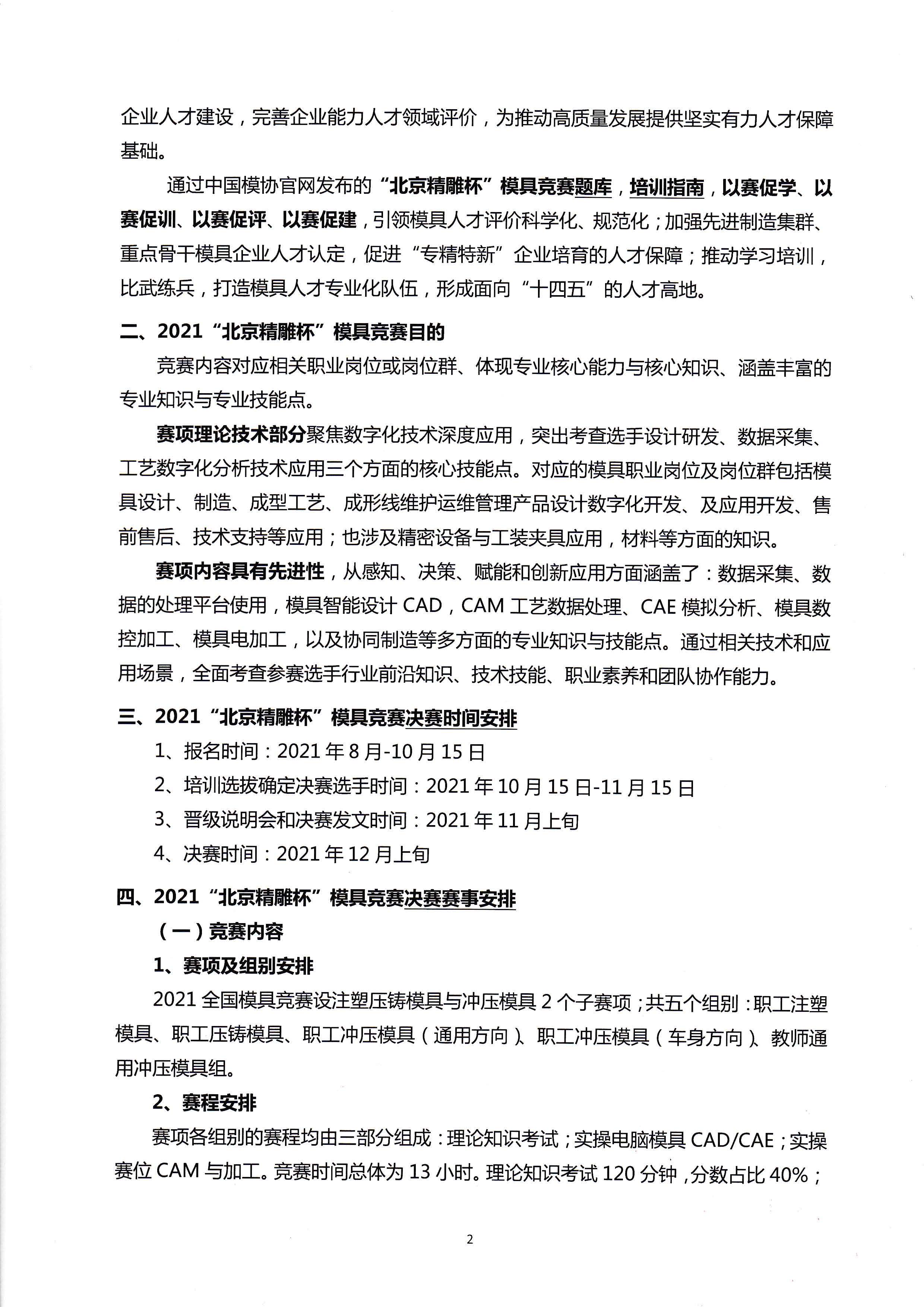 2021年人社部全國行業職業技能競賽——第十九屆全國機械行業職業技能競賽(“北京精雕杯”模具)報名通知