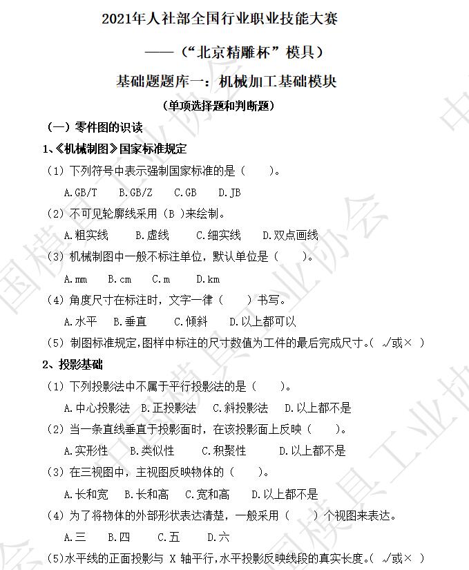 基礎(chǔ)題題庫(kù):機(jī)械加工基礎(chǔ)模塊、專(zhuān)用夾具模塊