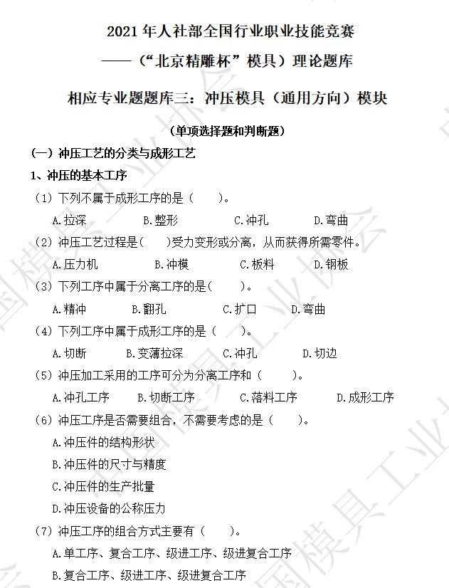 相應專業題題庫:沖壓模具(通用方向)模塊、沖壓模具(車身方向)模塊